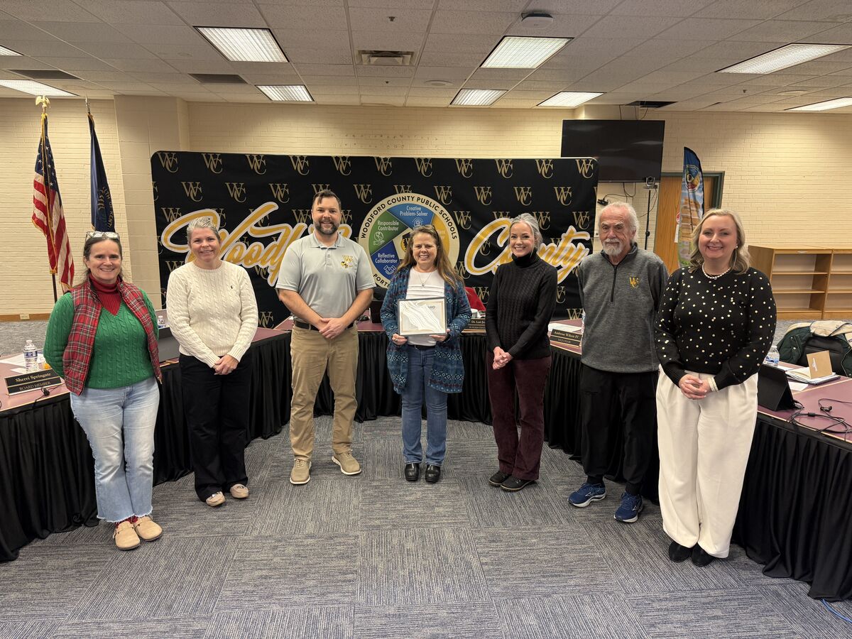 During the regular meeting, the board held one recognition. Mrs. Arlene Crabtree, Engineering teacher at Woodford County High School, was recognized for the achievements of the WCHS engineering program. The Kentucky Engineering Technology Education Association (KETEA) awarded a scholarship to Faith Ann Davis, WCHS Senior, and presented WCHS with the KETEA High School Program of the Year award! Thank you for your heart, leadership, and expertise, Mrs. Crabtree.